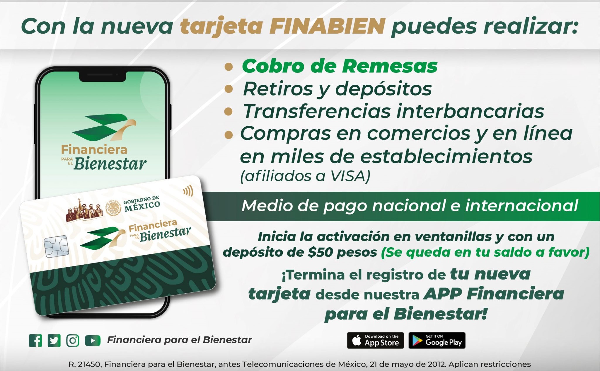 Te presentamos la nueva tarjeta FINABIEN, la cual permitirá a las y los usuarios tener un medio confiable para realizar depósitos y compras en miles de comercios establecidos y en línea en cualquier parte del mundo.